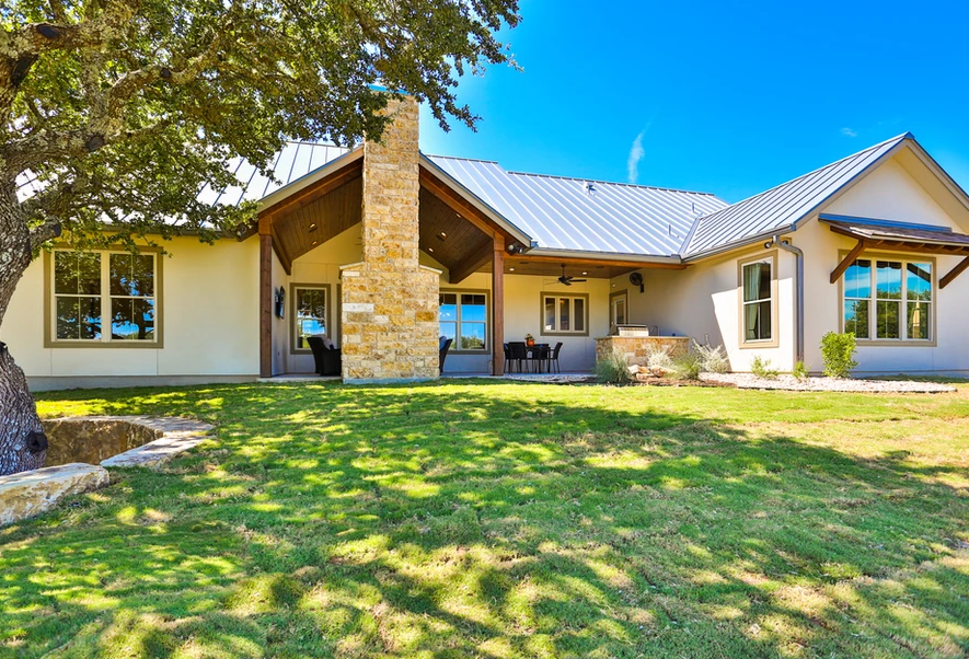 Spacious and open 2,737 sqft home includes 2.5 car garage, 3 bedrooms, 3.5 baths plus a study. Elegant Hill Country stone/stucco exterior, beautiful landscaping and custom cypress front doors make for impressive curb appeal. Living and dining rooms feature 14’ tall ceilings with cypress beams and a large gas fireplace, all of which open to a state of the art kitchen featuring custom cabinetry, large walk-in pantry, Bosch gas cooktop, granite countertops and bar seating. Equally impressive is the large outdoor living and dining space with kitchen/grill, fireplace and TV, ALL of which look out on stunning view of a flowing creek, pond and golf course. Large well-appointed master bedroom with open views and an elegant bath suite. Spacious 2nd and 3rd bedrooms each have ensuite bathrooms. A one-of-a-kind must see!